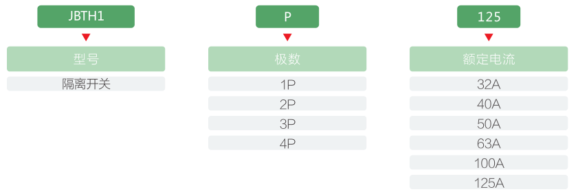 JBTH1-125系列隔离开关适用于交流50Hz,额定电流125A及以下,额定电压至400V的配电和控制电流中,主要作为终端组合电器中的总开关,也可以用于不频繁控制各类小功率电器和照明,广泛应用于工矿企业、高层建筑、商业及家庭等场所。